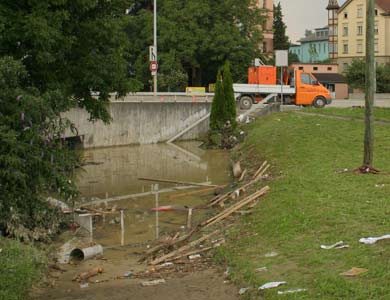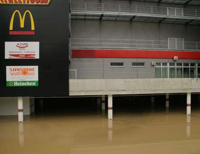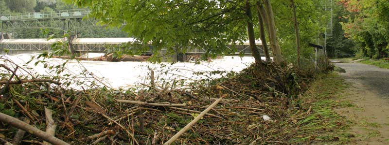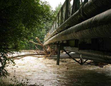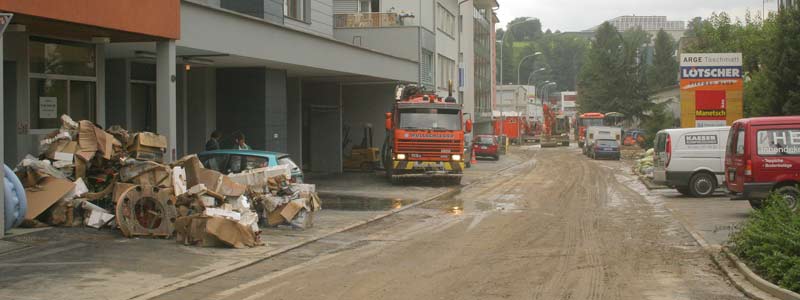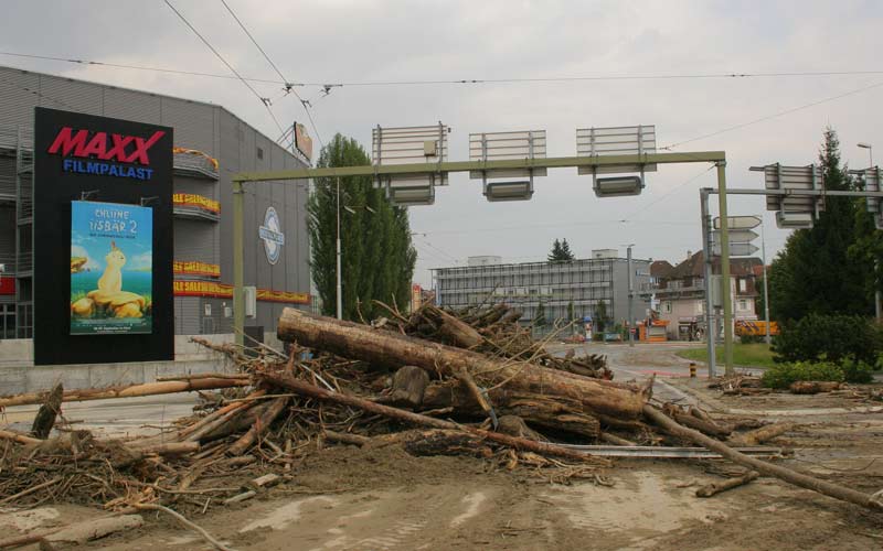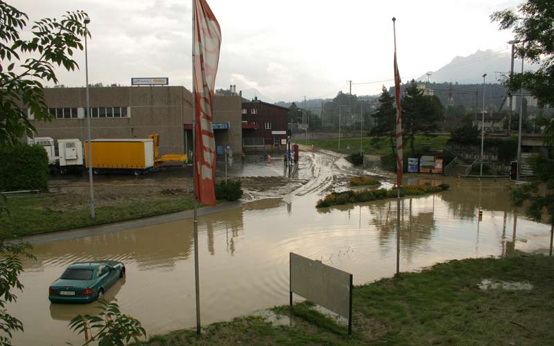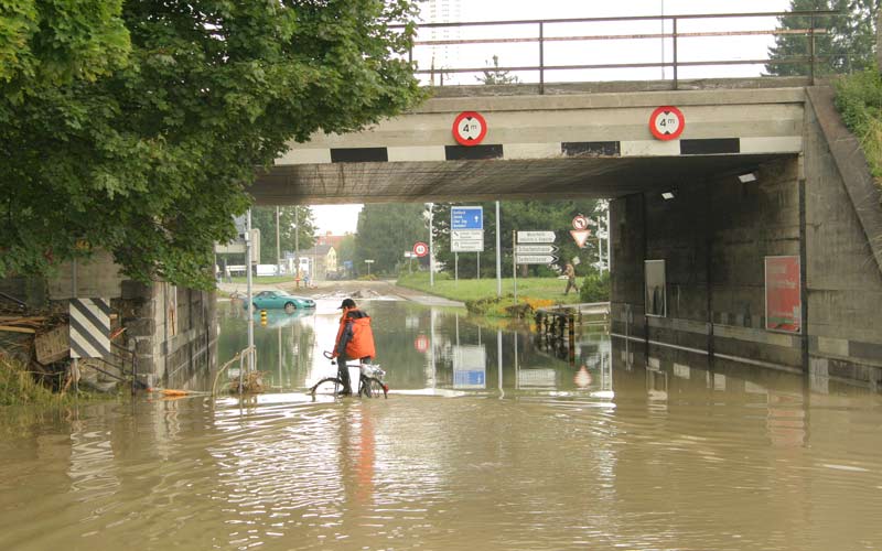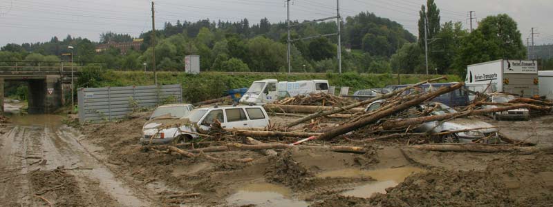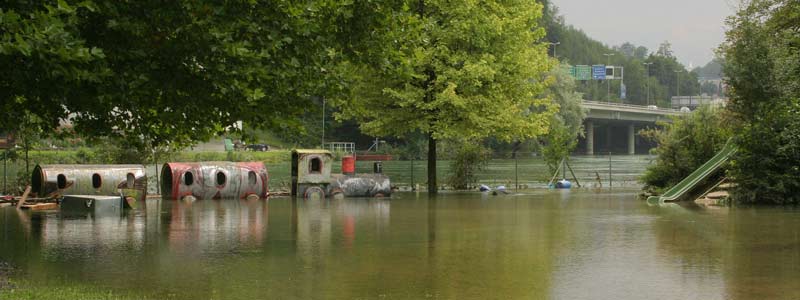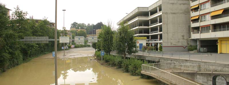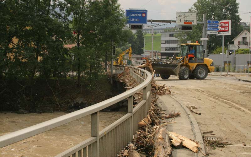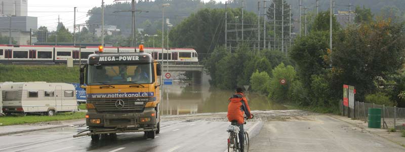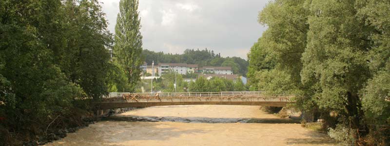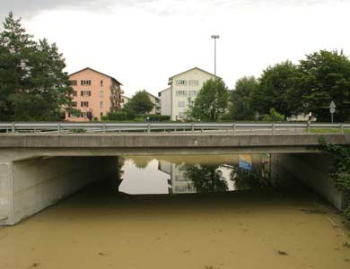Diese Brücke wurde in der Nacht vom Sonntag auf Montag überspült - so gelangte die Reuss ins Industriegebiet von Reussbühl